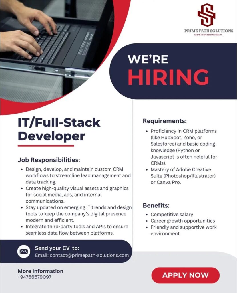 πŸš€ We’re Hiring – IT / Full-Stack Developer