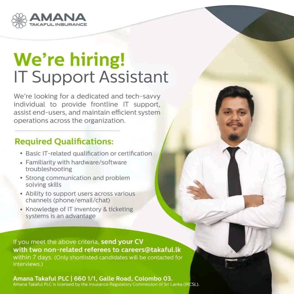 Amana Takaful Insurance is hiring an IT Support Assistant.