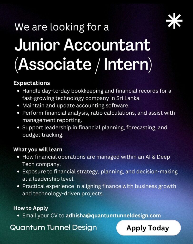 We’re looking for a Junior Accountant (Associate /Intern) who’s ready to dive deep into the financial world of an Al & Deep Tech company.