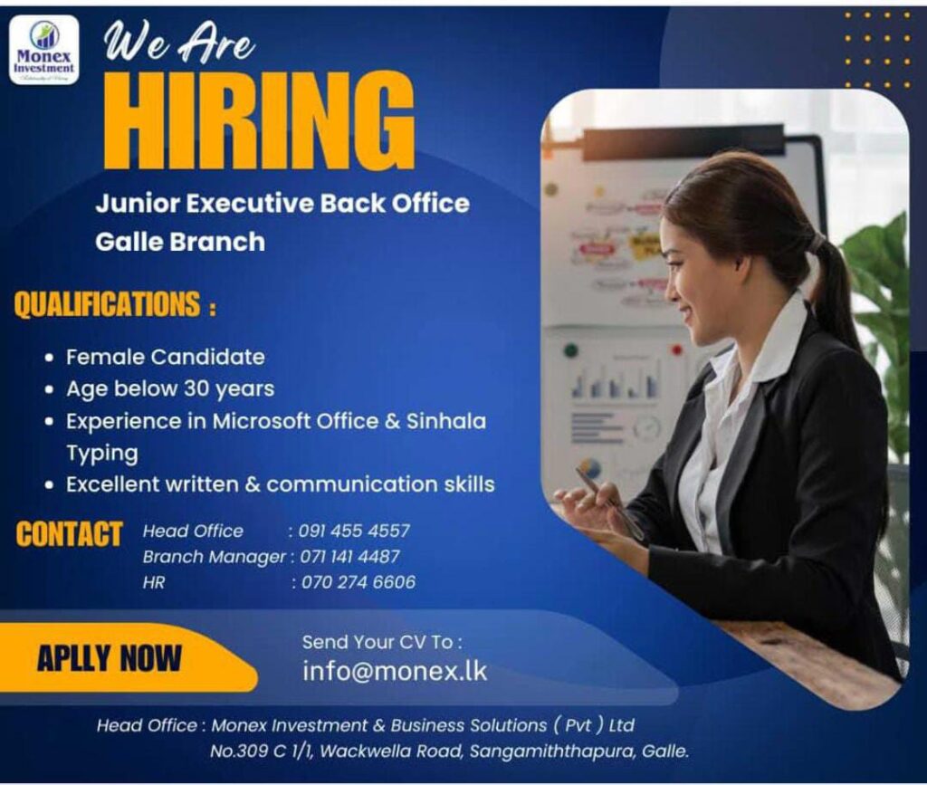 Send your CV:- info@monex.lk
