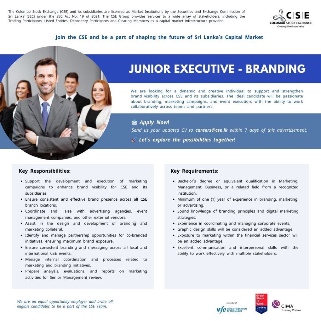 We are seeking ambitious individuals to apply for the position of a Junior Executive – Branding.
