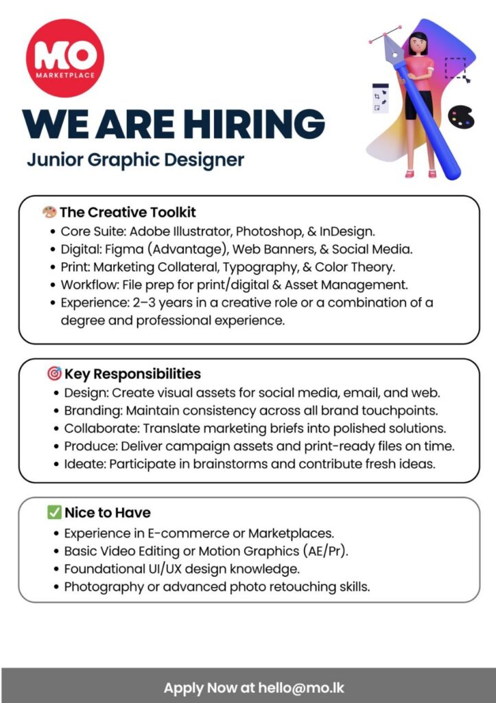 We are looking for a creative and detail-oriented Junior Graphic Designer to join our growing team. Help us craft compelling visual content and bring the MO brand to life across digital and physical platforms!