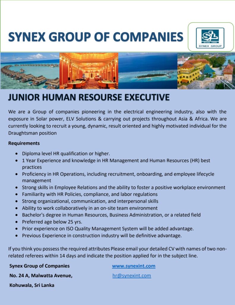 We are looking for immediate recruitment for Junior Human Resource Executive.