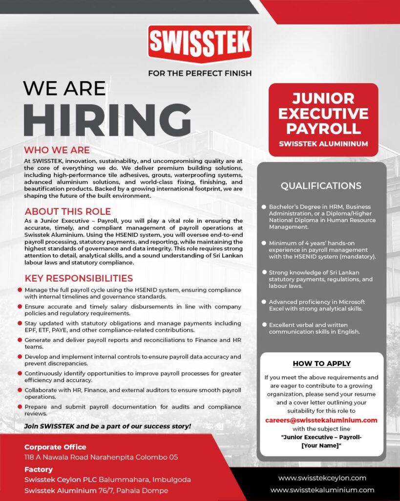 We’re looking for a detail-oriented and dedicated professional to join SWISSTEK as a Junior Executive – Payroll.