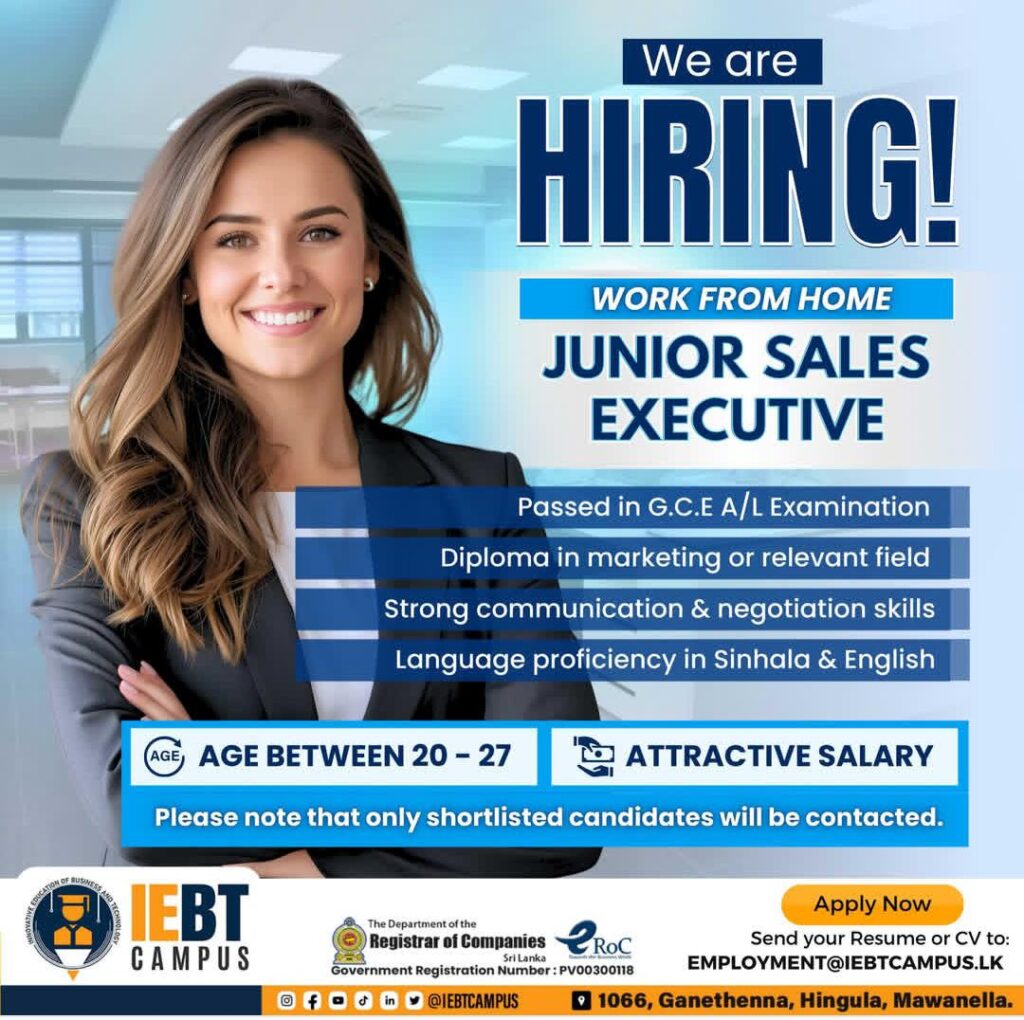 📧 Send your CV & portfolio to: employment@iebtcampus.lk