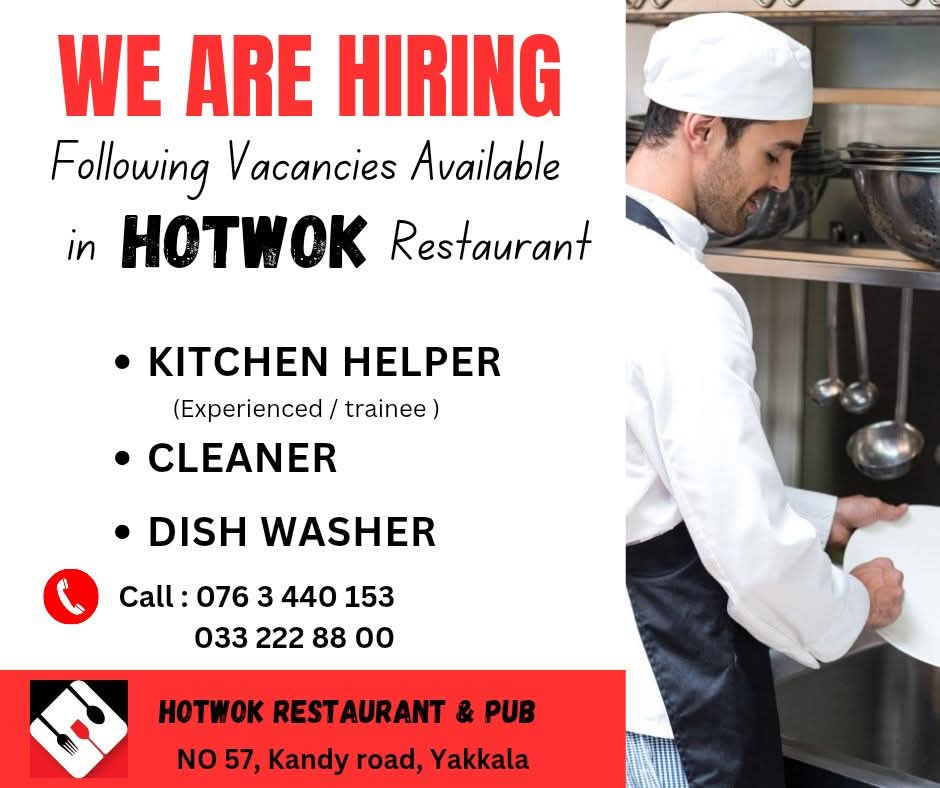 Hotel Kitchen Helper /Cashier / Dish Washer 8 months ago Vacancies availableCall : 0763440153 Yakkala Job Vacancy Company:- Hotwok Restaurant and Pub Post navigation Previous: HR Trainee / ReceptionistNext: Associate Project Manager – Part Time Related Vacancies Driver Finance and Accounts Hotel Receptionist Supervisor Waiter/ Waitress/ Cost Assistant/ Driver/ Housekeeping/ Receptionist 4 days ago Admin Cashier Hotel Human Resources Manager Cashier/ HR/Cook/ Manager/ Crew member 6 days ago Hotel Lecturer Part time Tourism Lecturer – Tourism & Hospitality 7 days ago