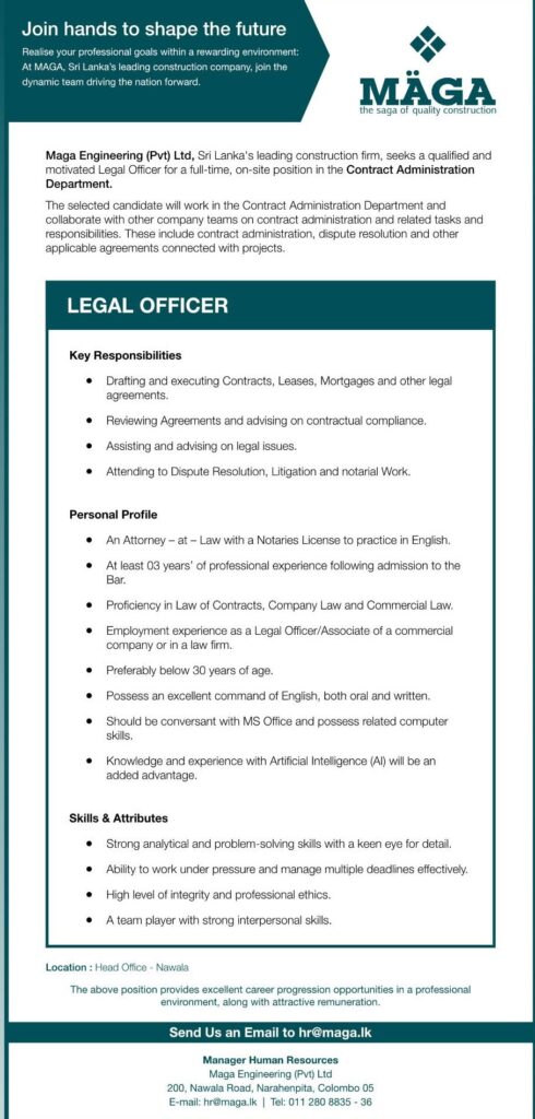Apply Now :- hr@maga.lk