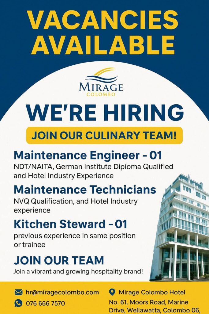 Mirage Colombo Hotel Job Vacancy