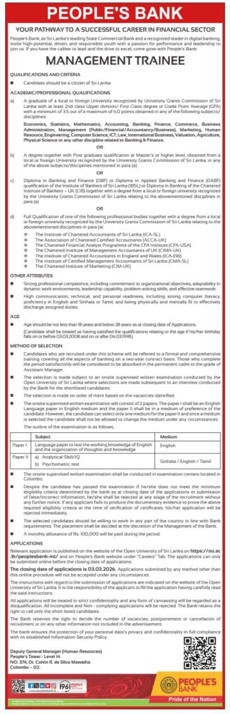 Economics, Statistics, Mathematics, Accounting, Banking, Finance, Commerce, Business Administration agement (Public/Financial/Accountancy/Business), Marketing, Human Resource, Engineering, Compu mputer Science, ICT, Law, International Business, Valuation, Agriculture, Physical other discipline related to Banking & Finance.