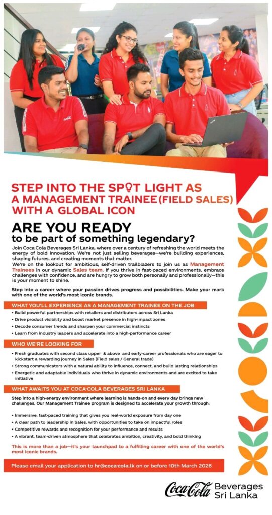 If you are willing to travel across Sri Lanka and have a strong interest in field sales, apply to hr@coca-cola.lk
