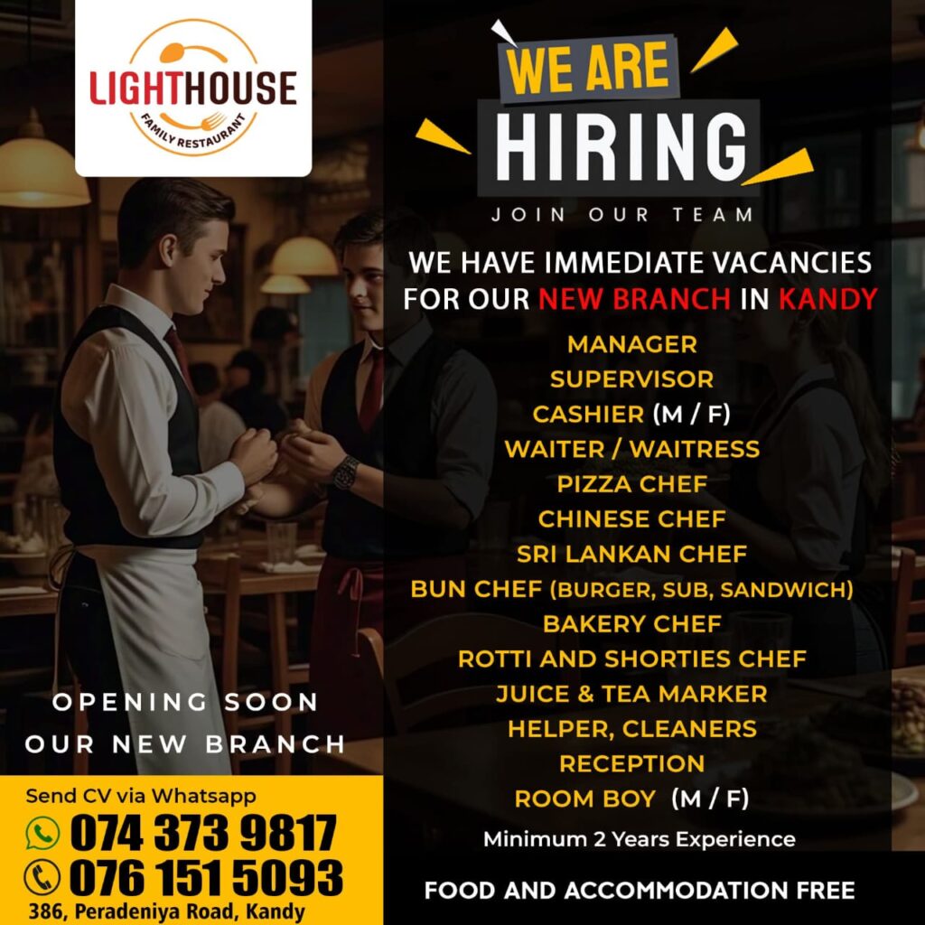 Manager/ Chef / Waiter/ Supervisor/ Helper / Receptionist