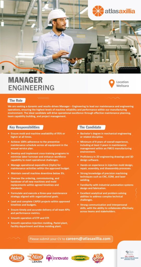Join Atlas Axillia and play a pivotal role in driving machine reliability, process optimization, and team capability building at our Welisara facility.