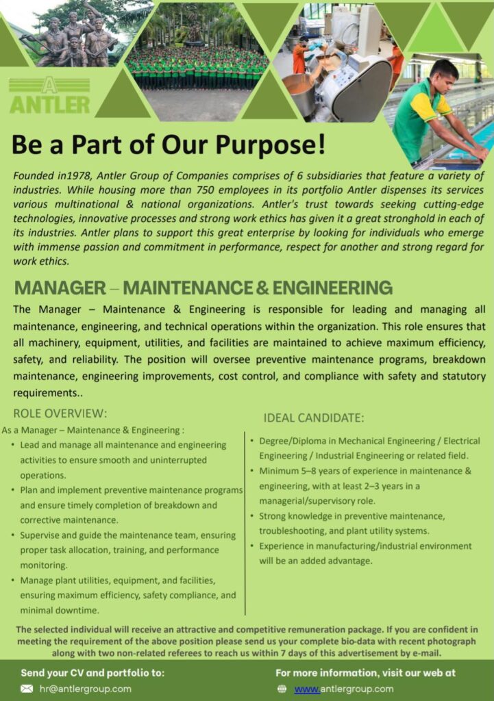 Manager – Maintenance & Engineering