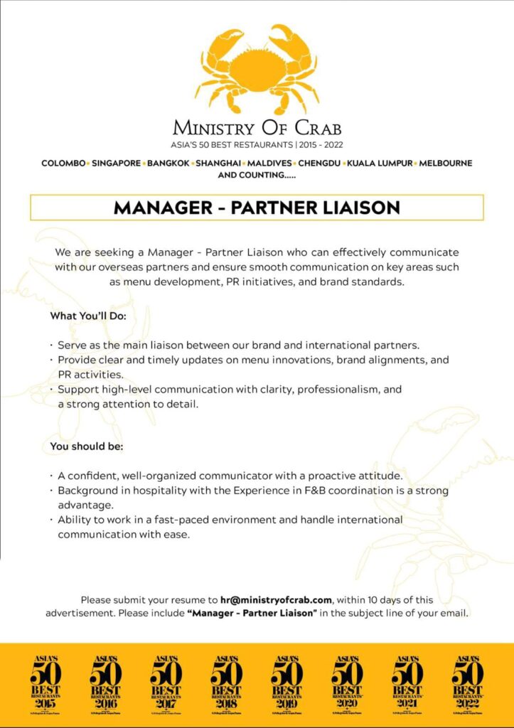 Email your resume to hr@ministryofcrab.com with “Manager: Partner Liaison” as the subject line.