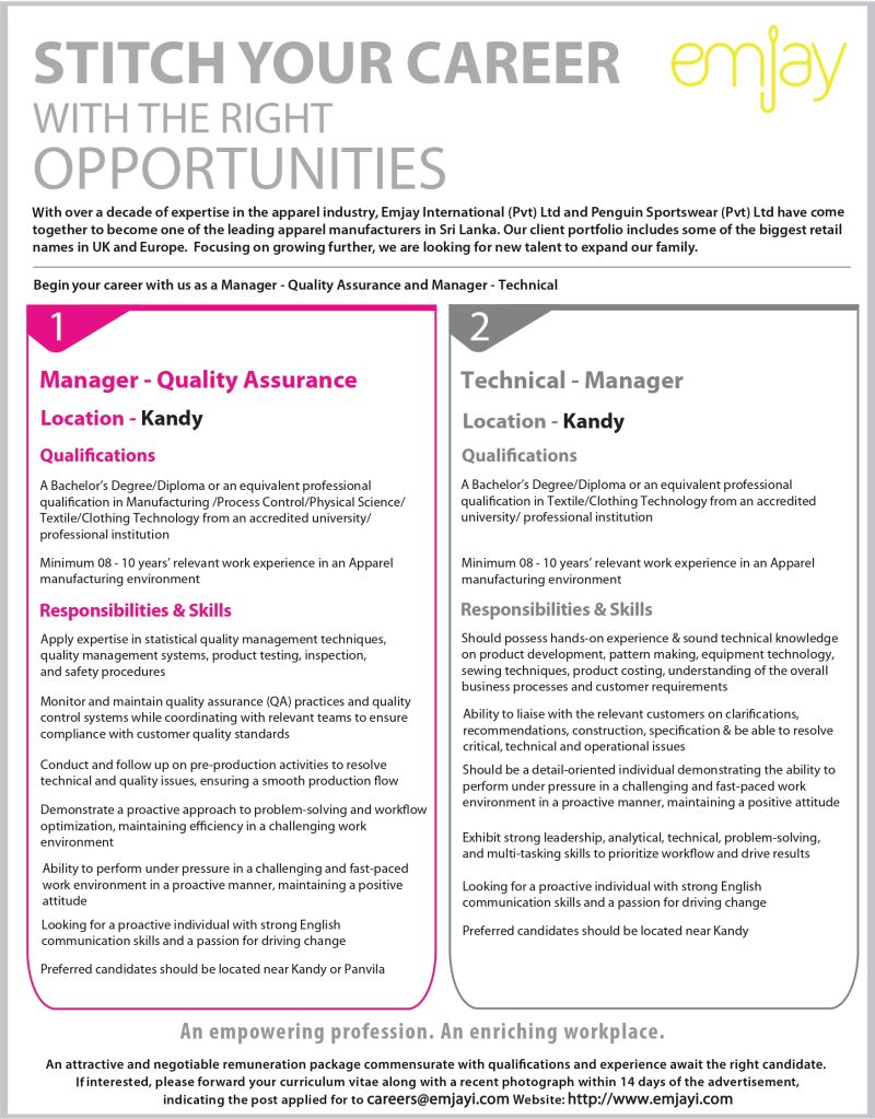 Bachelor’s in Textile clothing , Manufacturing Process control , Physical Science, Textile or related