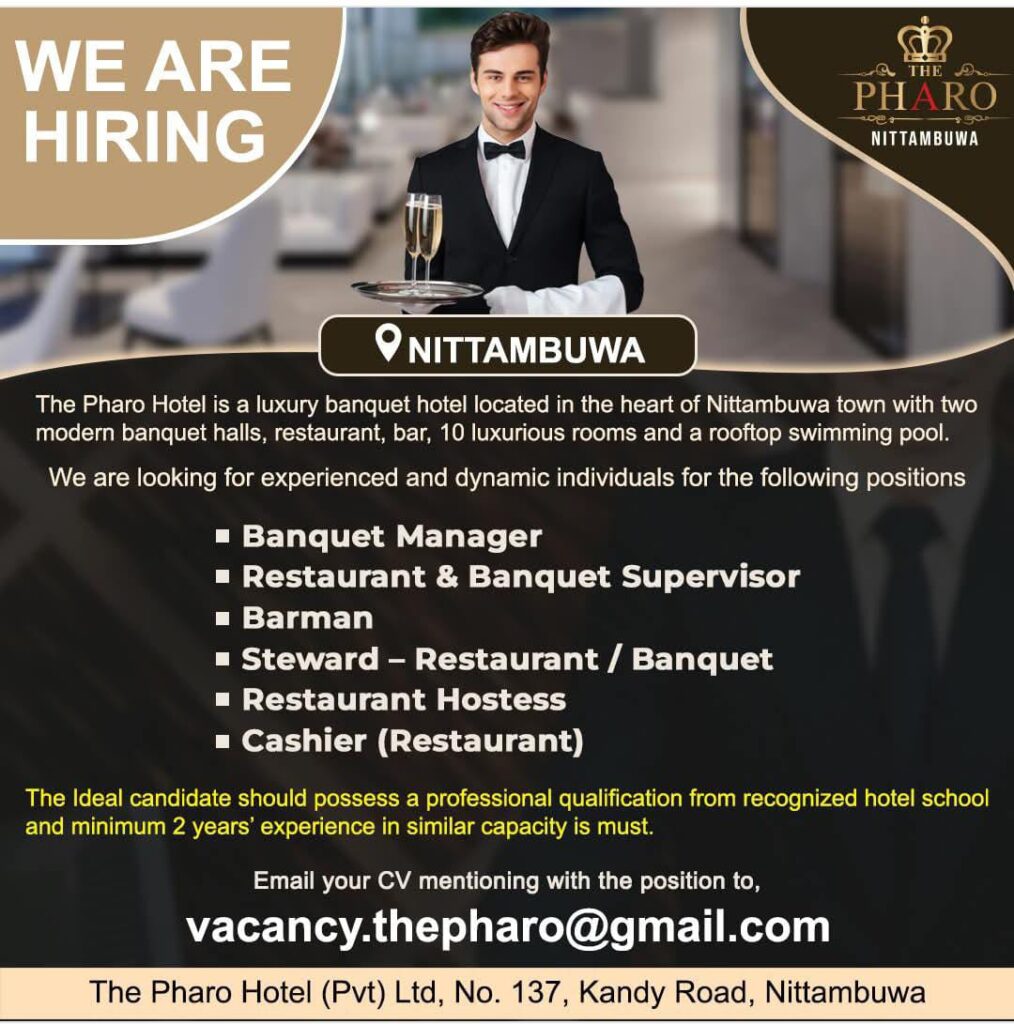 🌟 WE ARE HIRING – Join Our Team at The Pharo Hotel, Nittambuwa! 🌟