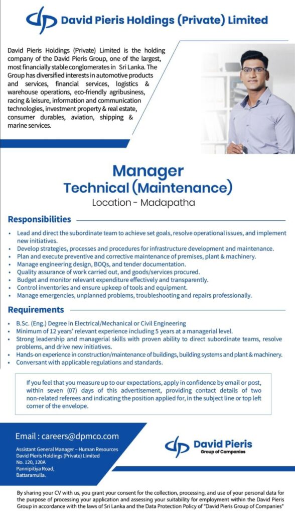 Company:- David pieris Holdings Pvt ltd
