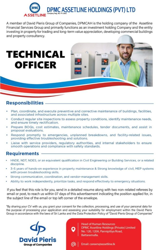 Apply Now :- careers@assetline.lk