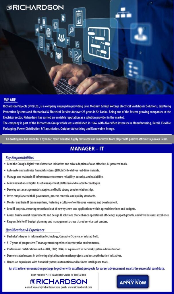We Are Hiring: Manager-IT