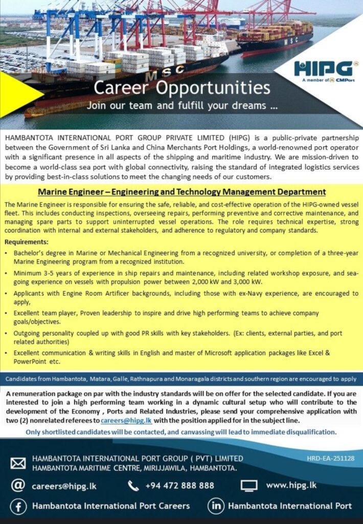 Apply Now:- careers@hipg.lk