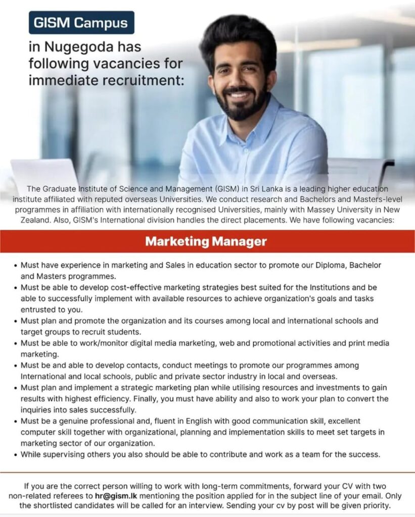 If you are the right person whose experience and qualifications properly match with our requirements, send your application cv to hr@gism.lk.