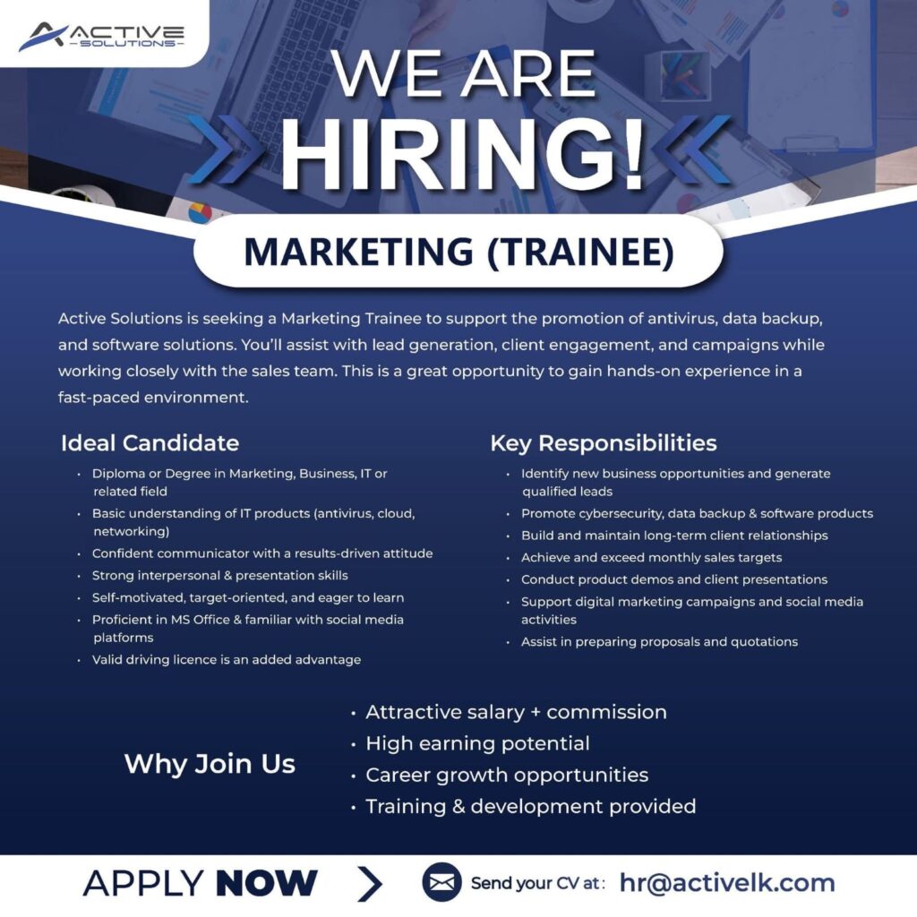 Apply Now :- hr@activelk.com