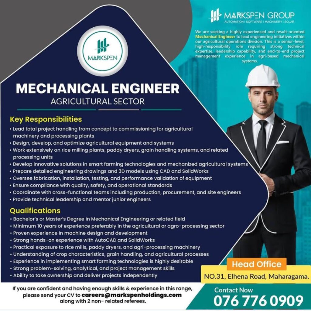 Markspen Group is looking for a highly experienced and results-driven Mechanical Engineer to lead engineering initiatives within our agricultural operations division.