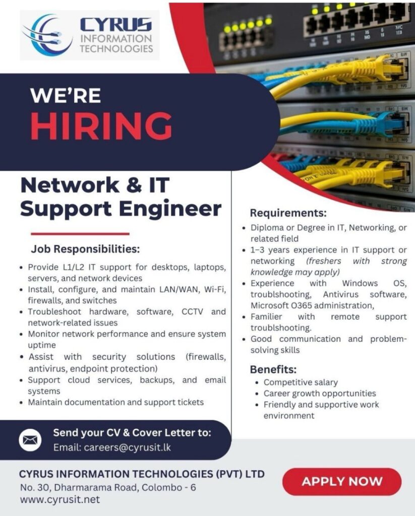 Apply: careers@cyrusit.lk