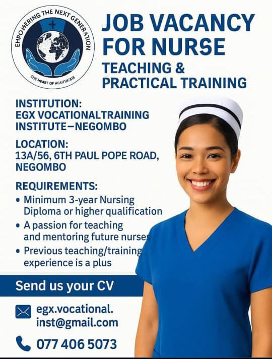 Join EGX Vocational Training Institute – Negombo as a Nurse Trainer! 🩺