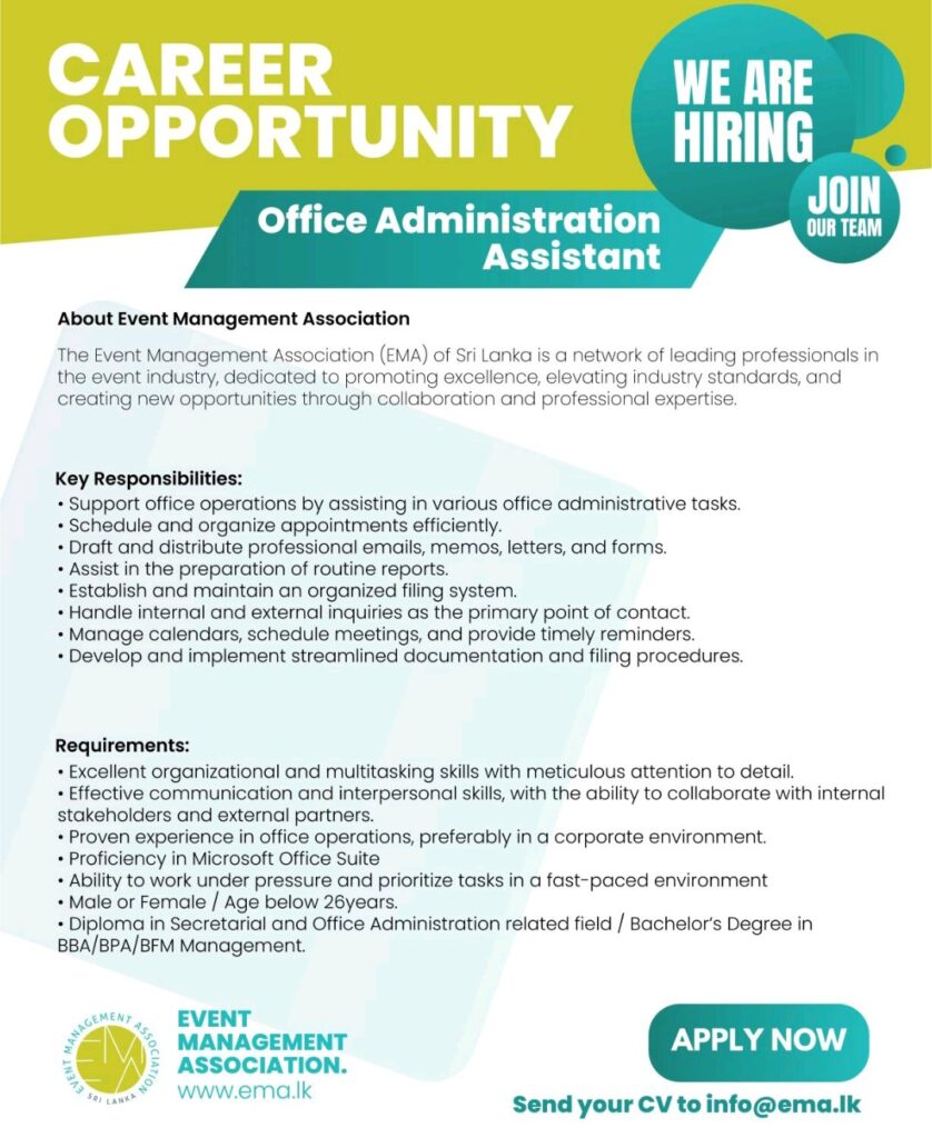 The Event Management Association (EMA) of Sri Lanka is HIRING an Office Administration Assistant!