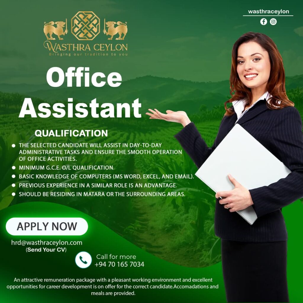 We are looking for a trustworthy and efficient Office Assistant to join our company in Hambanthota.