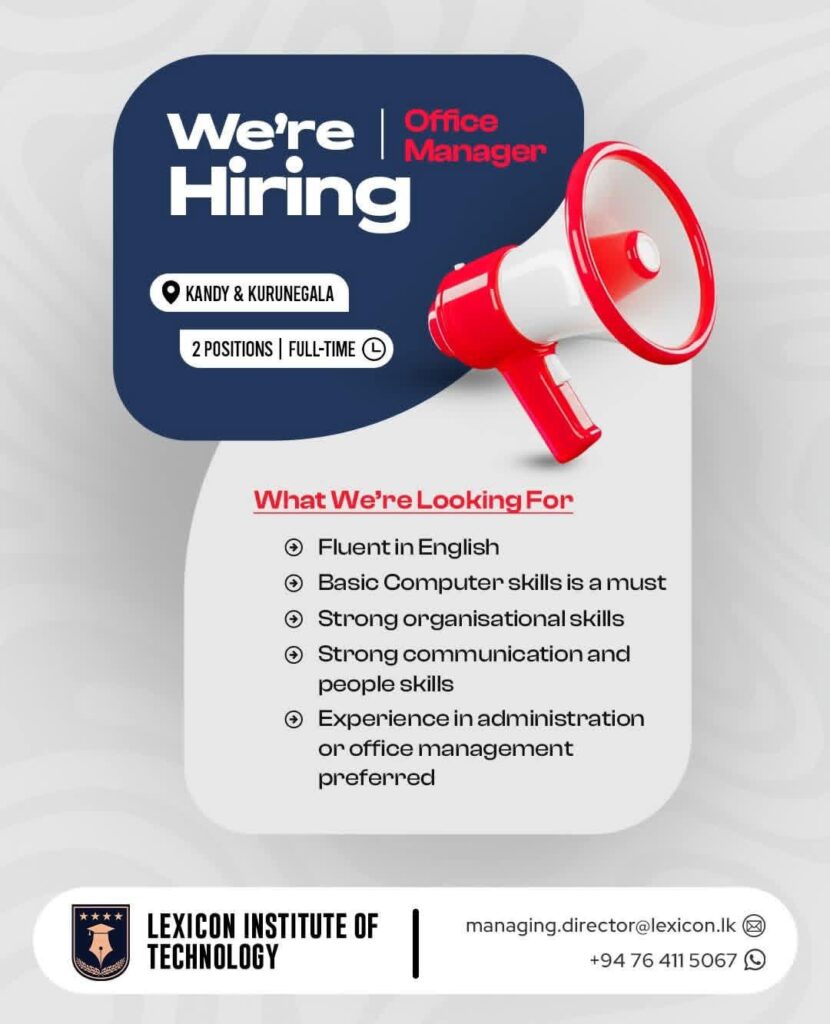 We’re hiring an Office Manager for our Kandy & Kurunegala locations.