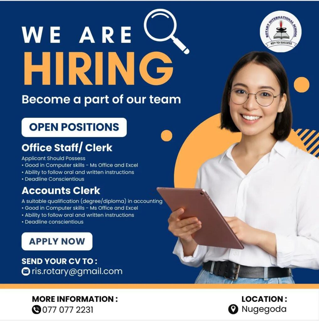 Send your CV to ris.rotary@gmail.com or call 077 077 2231 for more info.
