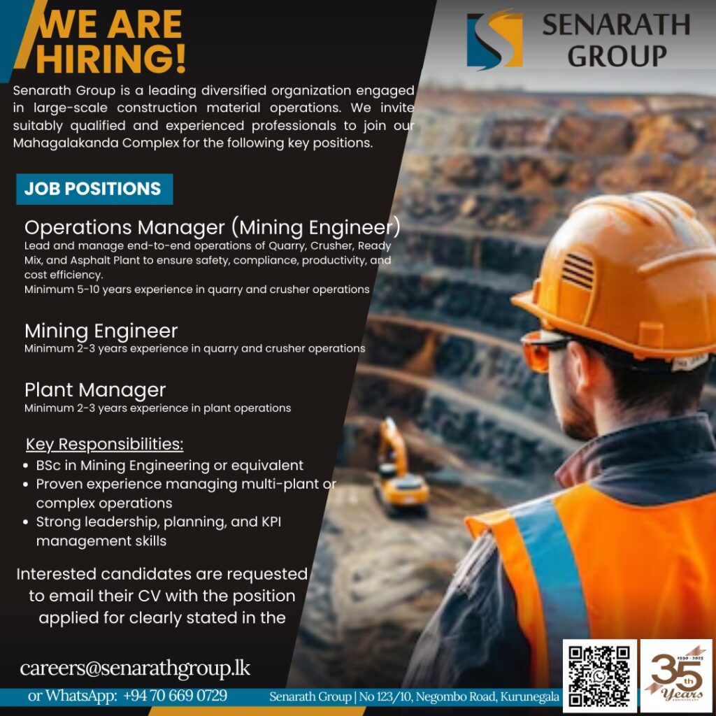 Apply Now :- careers@senarathgroup.lk
