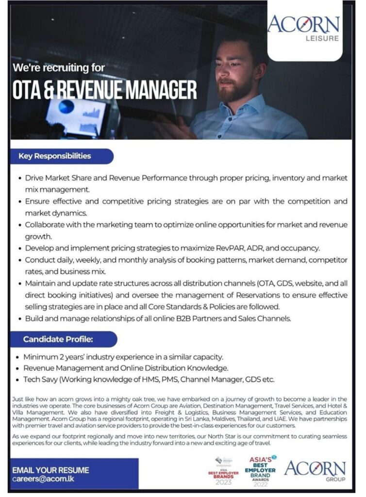 We’re recruiting for OTA & REVENUE MANAGER