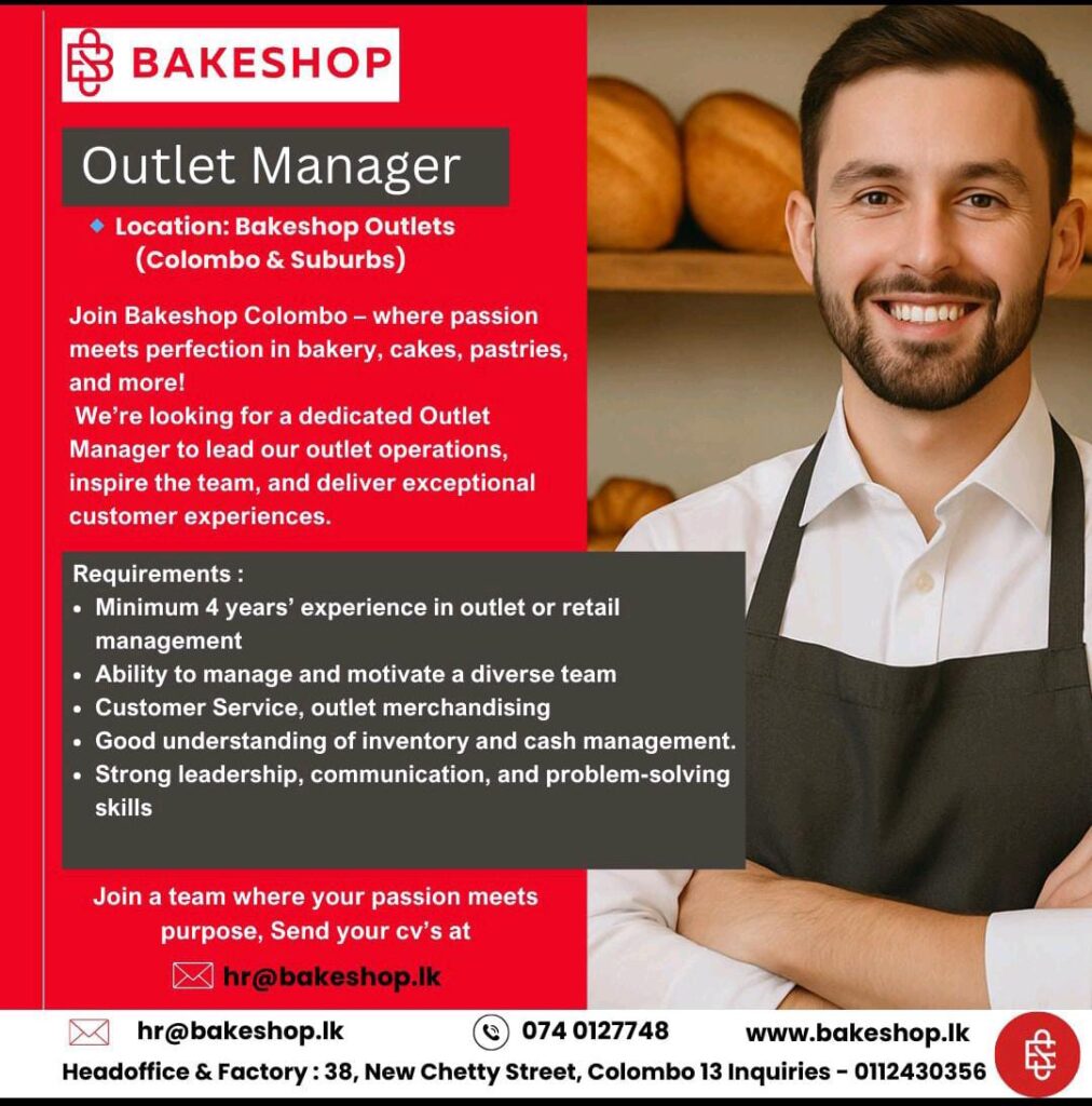 Bakeshop Colombo is where passion meets perfection in bakery, cakes, pastries, and more. We are looking for a dedicated Outlet Manager to lead operations, inspire teams, and deliver outstanding customer experiences. Join us and be part of a team where your passion meets purpose!