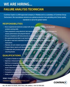 Deadline:- 19th December 2025 WE ARE HIRING - Test Engineer Contrinex Ceylon is a BOI-approved company in Wattala and a...
