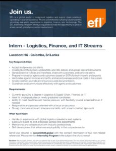 Deadline :- 19th December 2025 Company:- Emp Academic qualifications in Electrical, Electronics engineering Apply Now :- careers@empholdings.lk Location:- Homagama Sri...