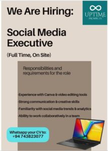 Deadline :- 19th December 2025 Company:- Mavin Construction & Design Pvt ltd Location:- Kurunegala Apply now :- mavincons@gmail.com