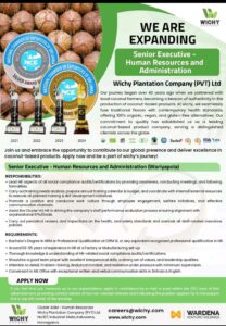 Deadline:- 17th December 2025 Company:- Lanka Canneries Pvt ltd Apply now :- hre@hunters.lk Location:- Attanagalla