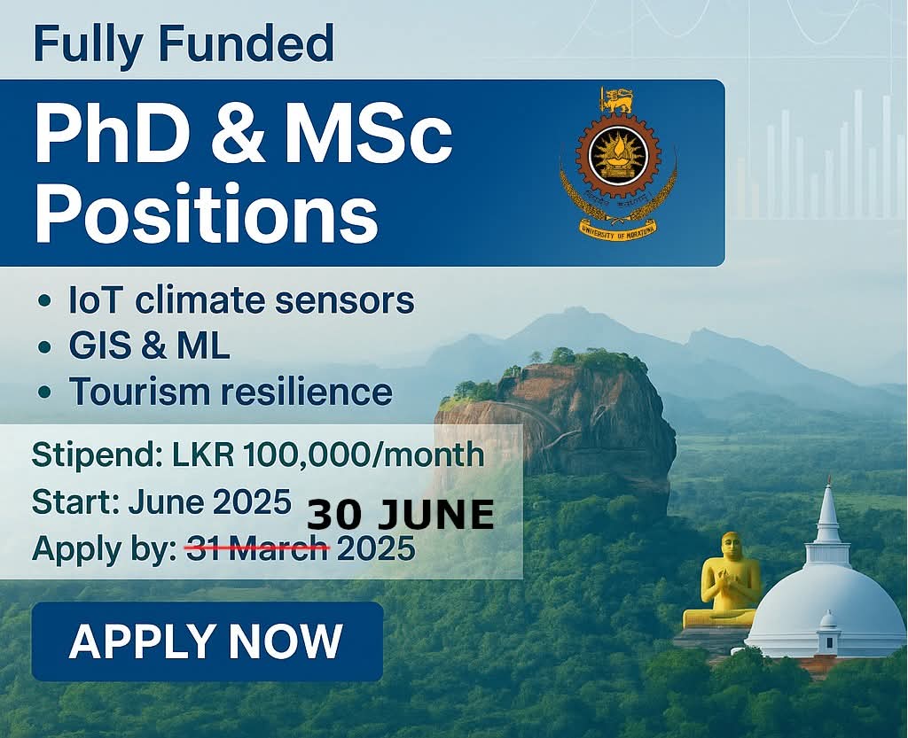 Immediate Recruitment for Fully Funded PhD and Two MSc Positions (2025 – 2028) at University of Moratuwa