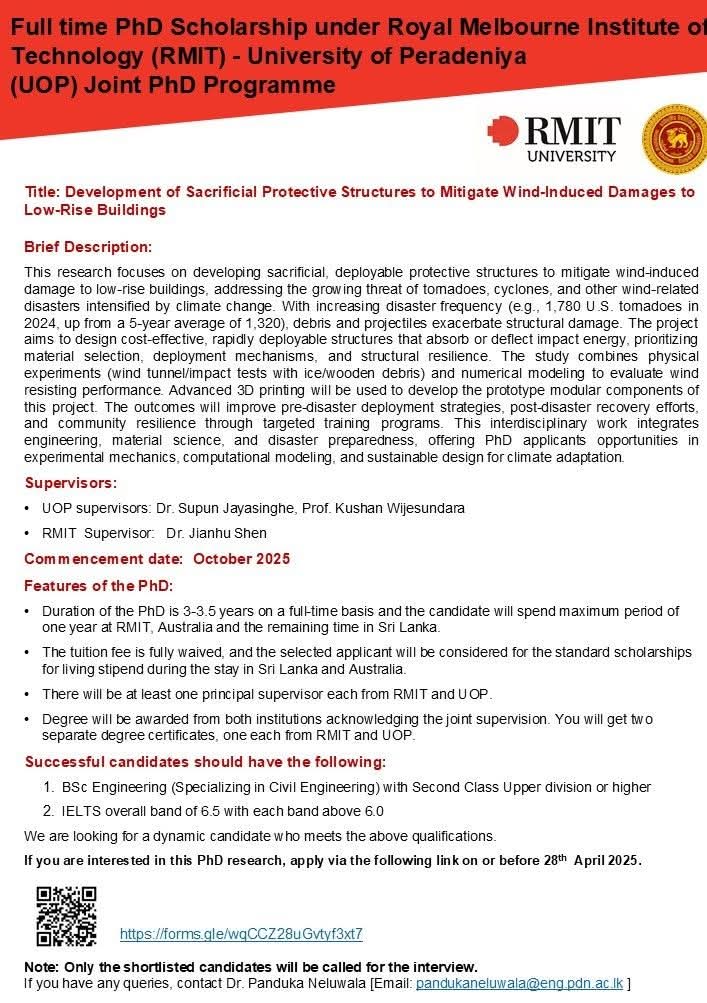 Full time PhD Scholarship under Royal Melbourne Institute of Technology (RMIT) – University of Peradeniya