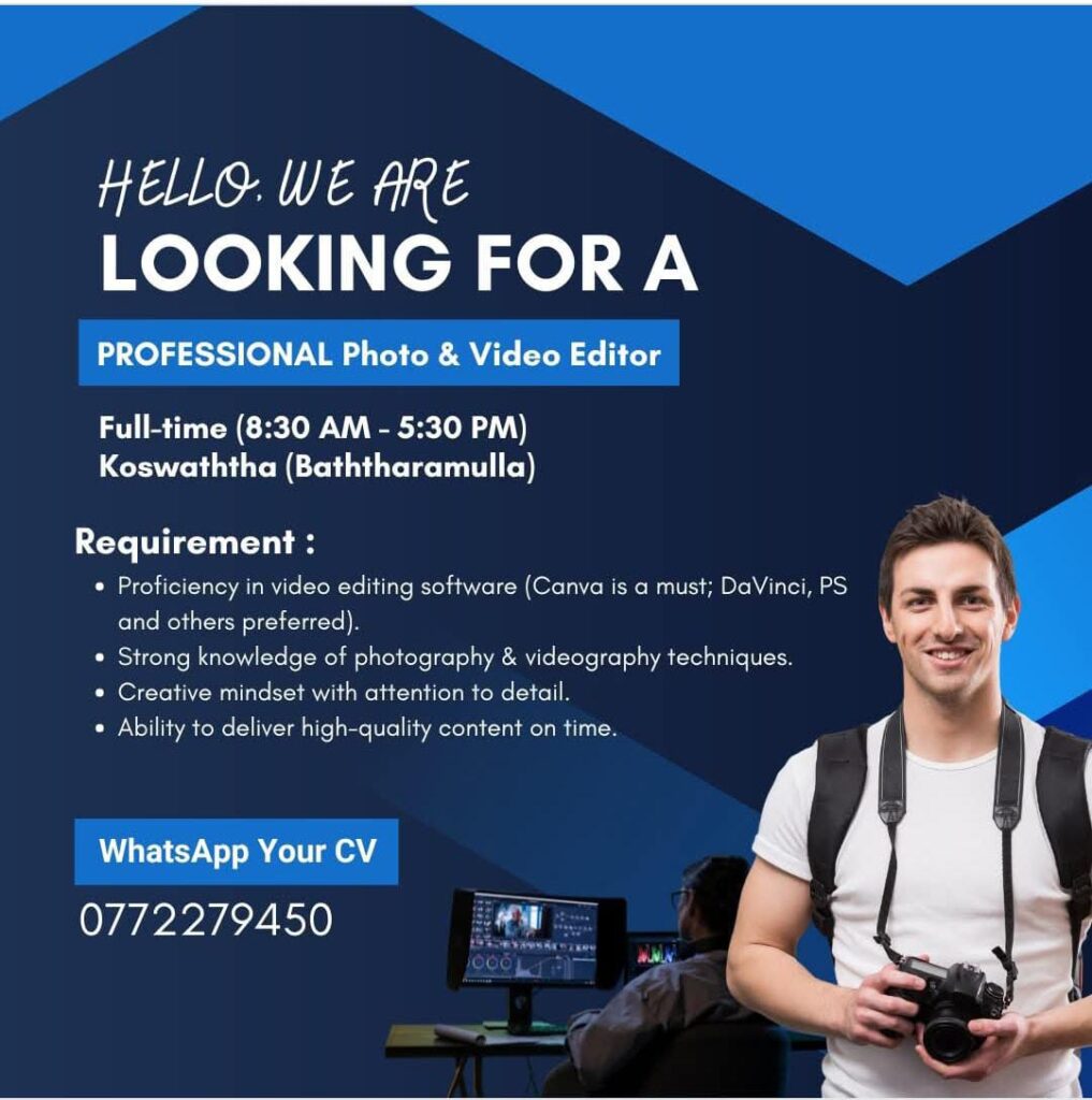 🎬 We’re Hiring: Professional Photo & Video Editor 📸