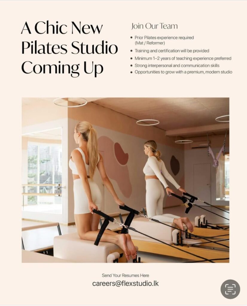 Are you a passionate Pilates instructor with a love for movement and mindful strength? We’re looking for talented reformer & mat instructors to join our team at a chic new studio launching soon in the heart of Colombo.