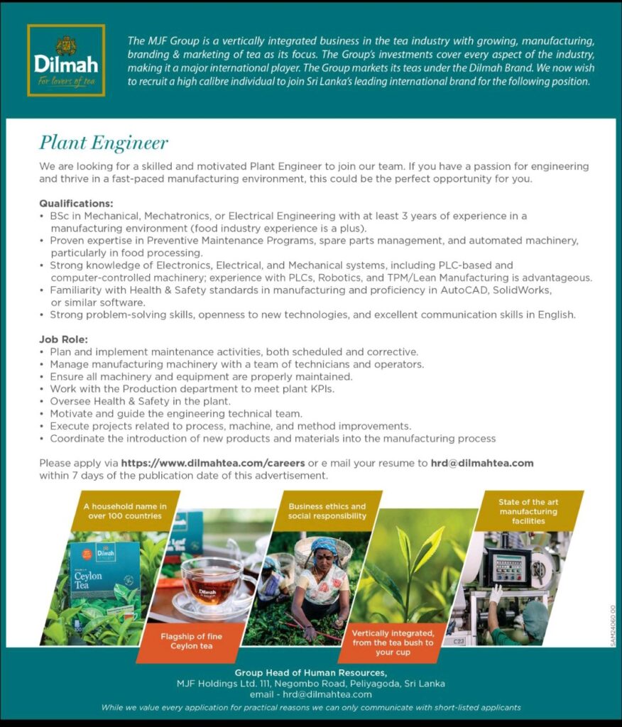 We are looking for a skilled and motivated Plant Engineer to join our team.
