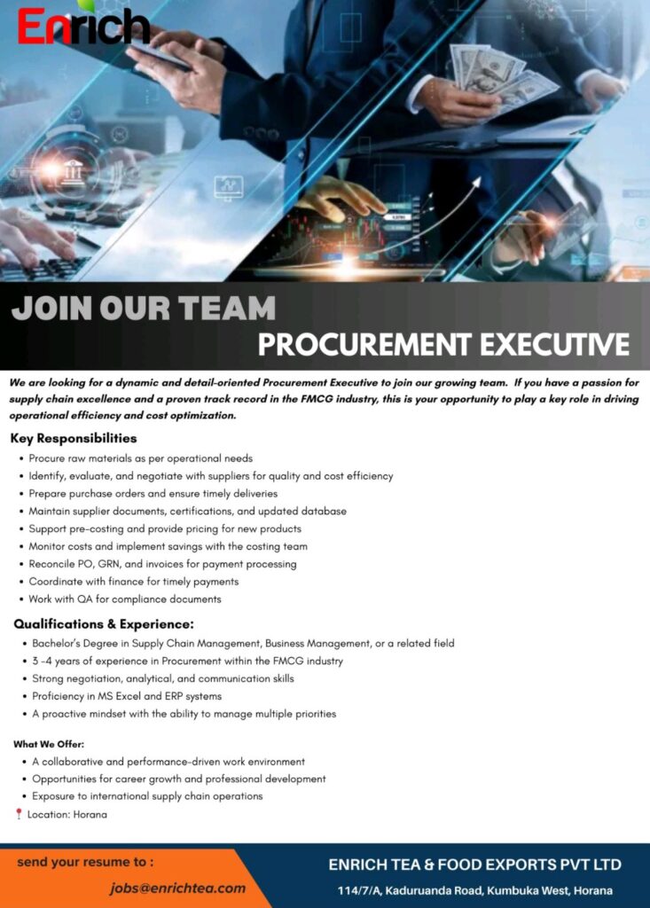Procurement Executive – Horana Factory