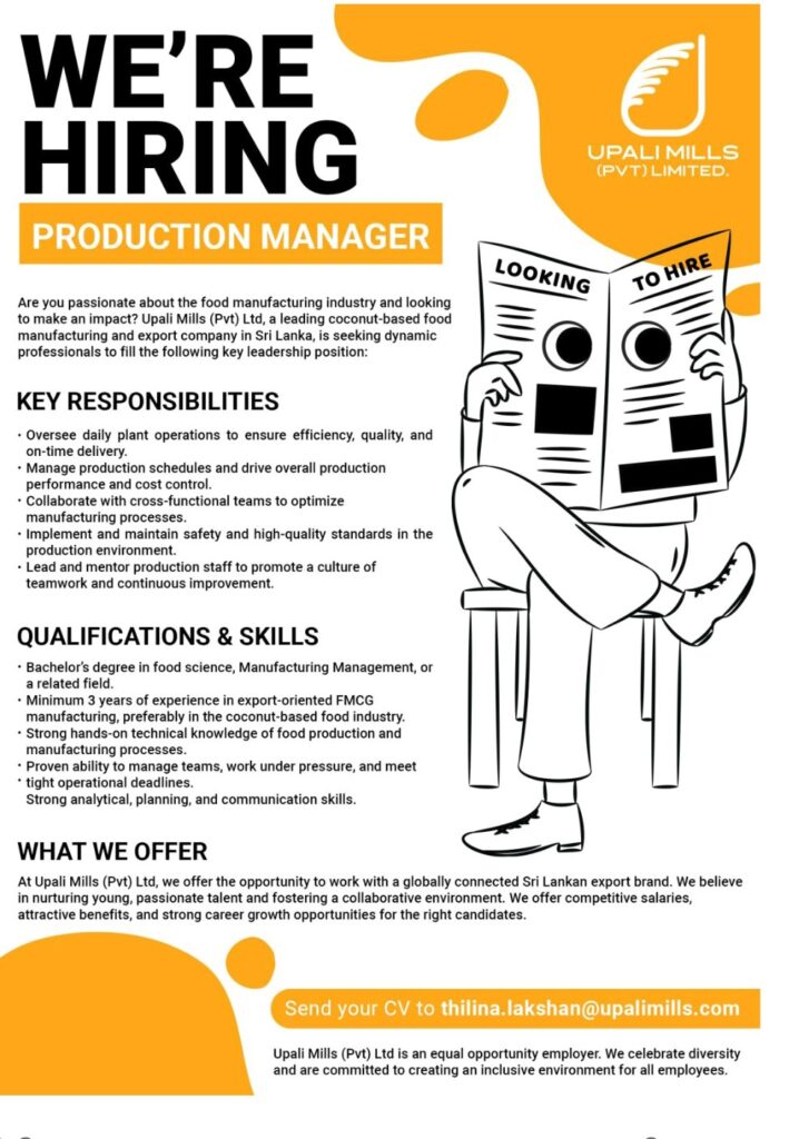 Apply now :- thilina.lakshan@upalimills.com