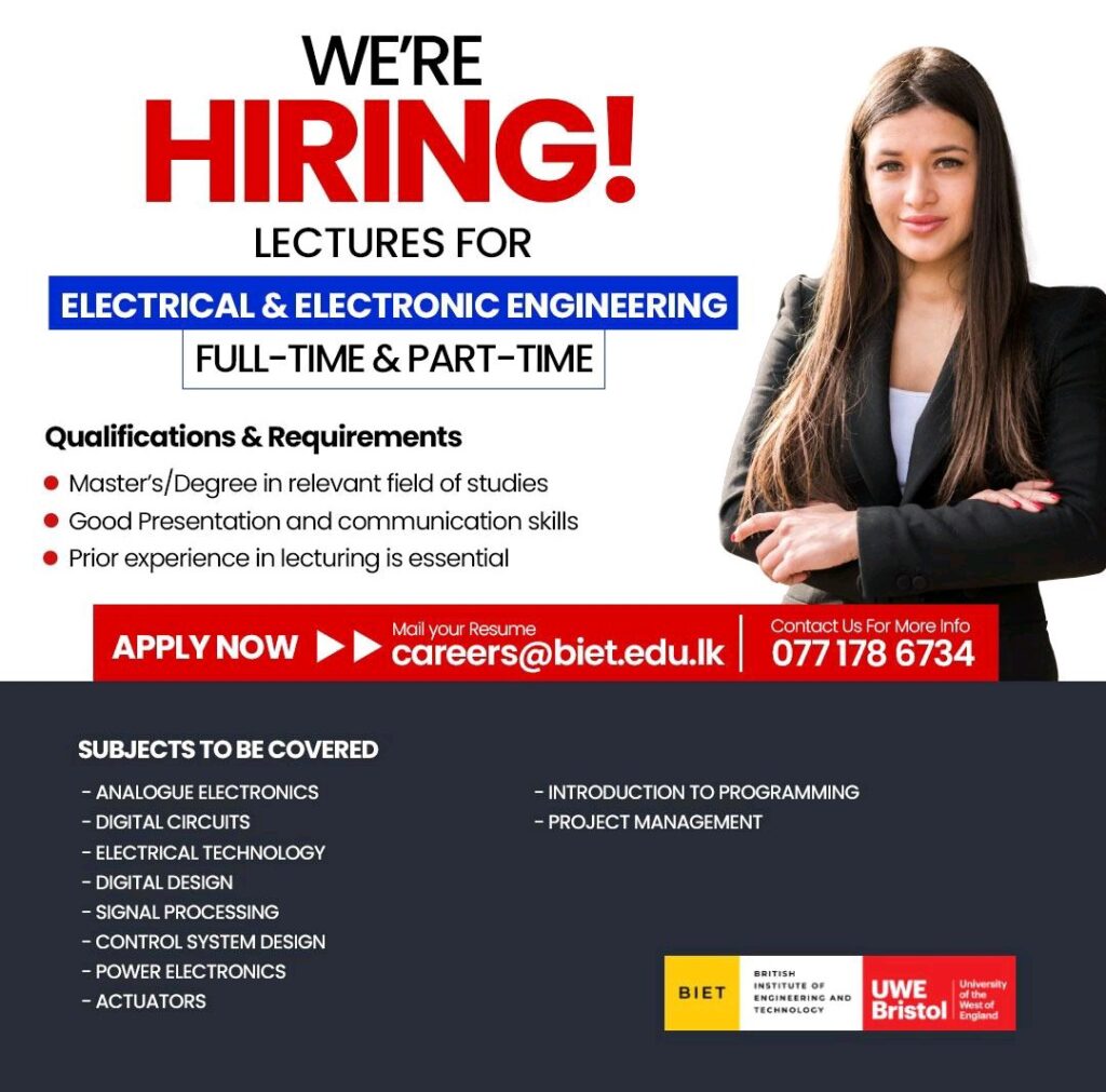experienced candidates for the position of Program Lead / Lecturer in Electrical & Electronic Engineering. The selected candidate will be responsible for providing academic leadership, delivering high-quality lectures, and contributing to the continuous improvement of our EEE programs.