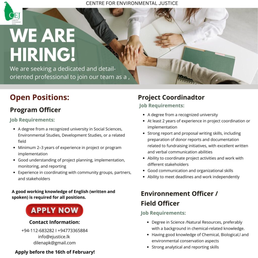 • Program Officer / Project Coordinator /Environment Officer/ Field Officer