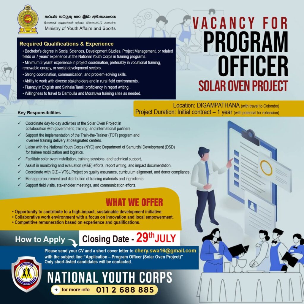 🌞 VACANCY ALERT – PROGRAM OFFICER (Solar Oven Project) 🌱